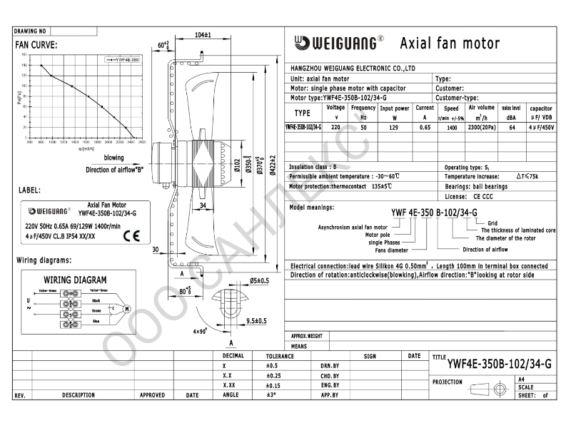 Вентилятор YWF 4E - 350 B 102/34 G (220V)