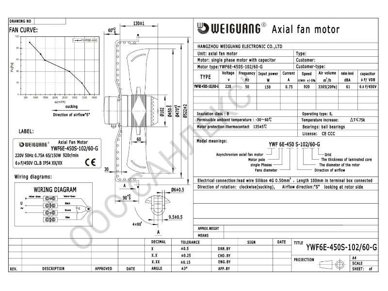 Главная » Каталог » Вентиляторы осевые YWF » Вентилятор YWF 6E - 450 S 102/60 G (380V)