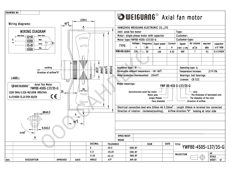 Главная » Каталог » Вентиляторы осевые YWF » Вентилятор YWF 8E - 450 S 137/35 G (220V)