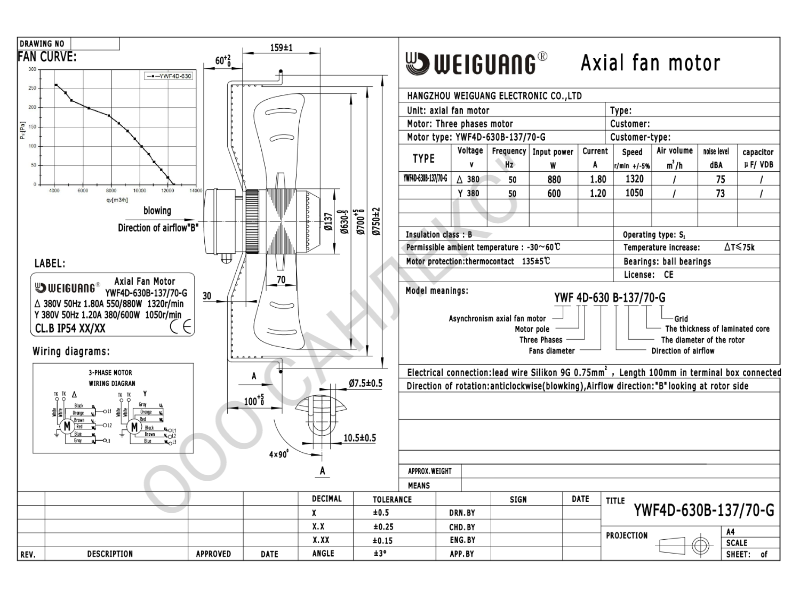 Вентилятор YWF 4D - 630 B 137/70 G (380V)
