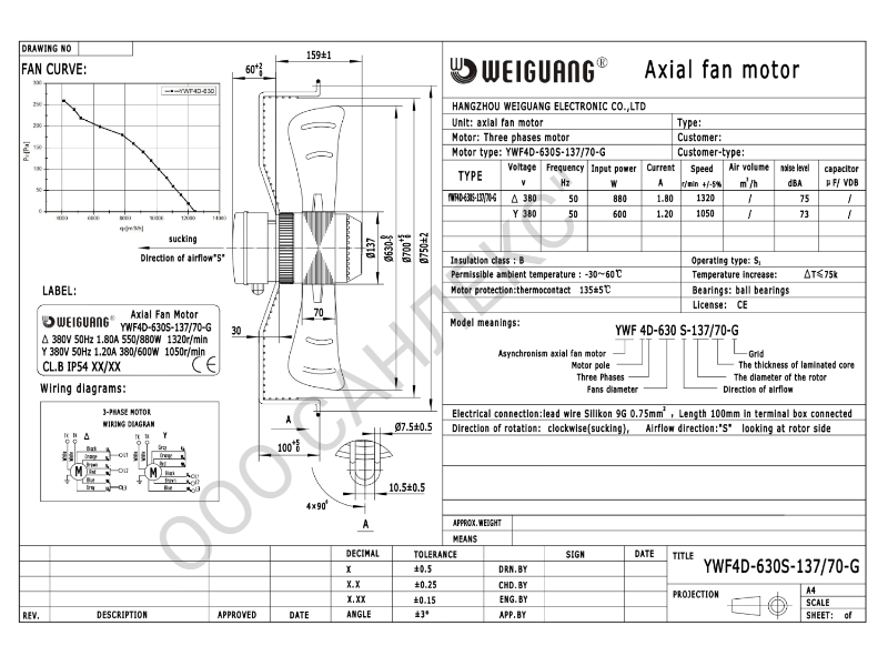 Главная » Каталог » Вентиляторы осевые YWF » Вентилятор YWF 4D - 630 S 137/70 G (380V)