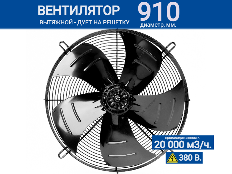 - Диаметр лопастей: 910 мм, что позволяет создавать мощный поток воздуха для вентиляции больших пространств.