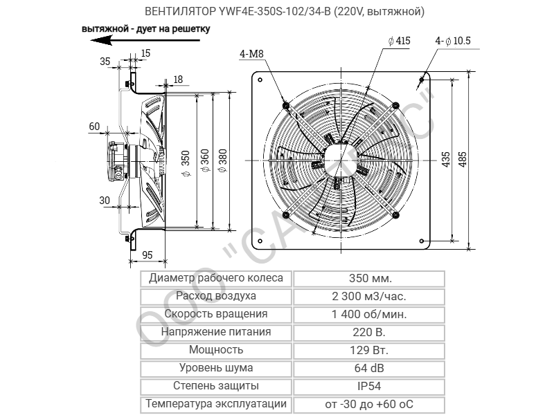 - Диаметр лопастей: 350 мм, что позволяет создавать мощный поток воздуха для вентиляции больших пространств.