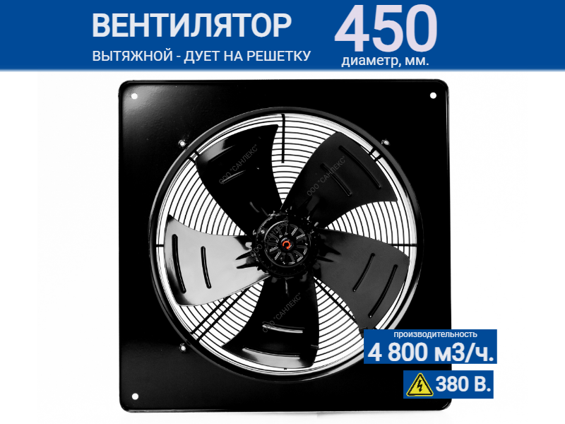 - Диаметр лопастей: 450 мм, что позволяет создавать мощный поток воздуха для вентиляции больших пространств.